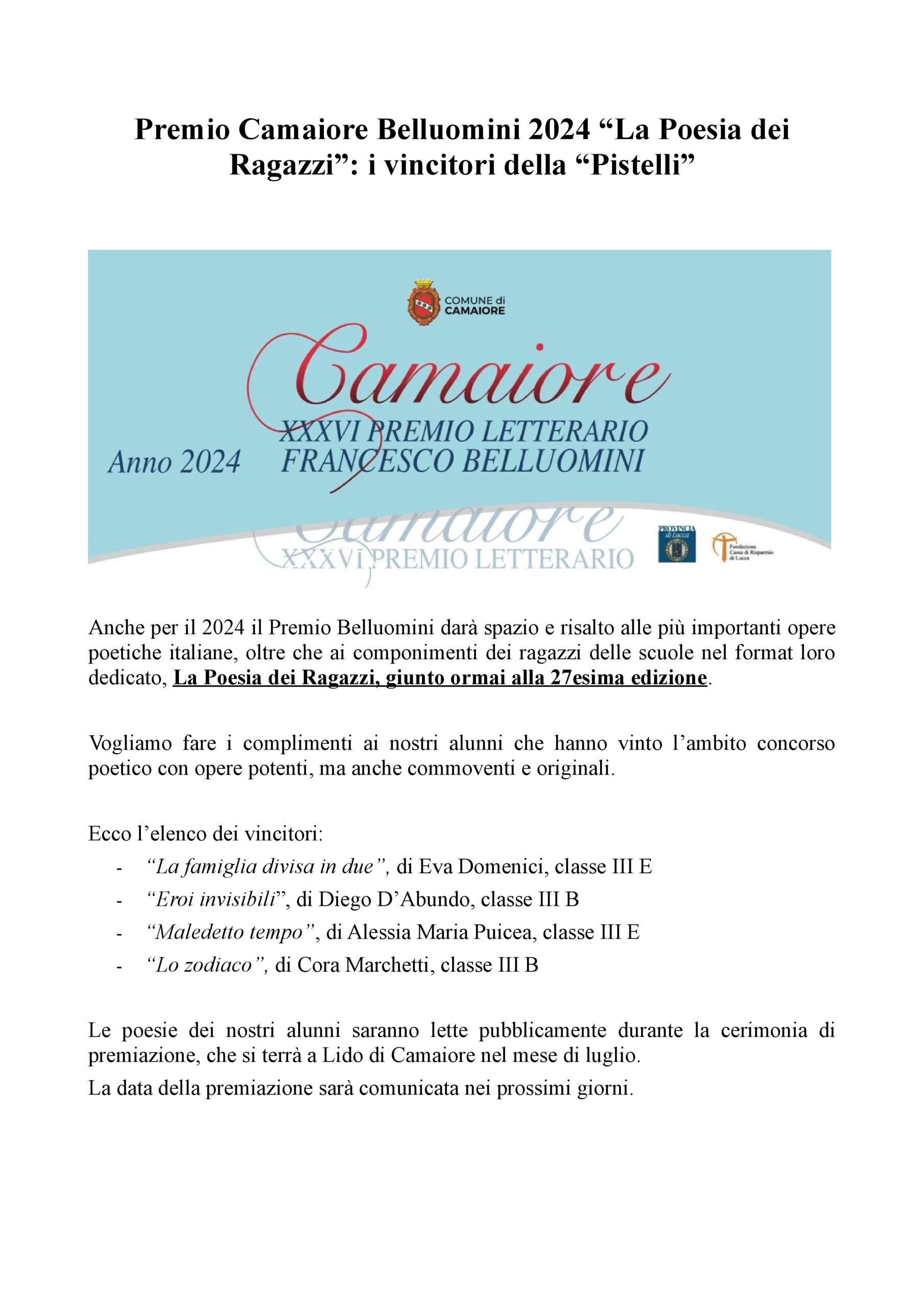 Complimenti ai nostri alunni che hanno vinto l’ambito concorso poetico con opere potenti, ma anche commoventi e originali. Nell'articolo, i nomi dei vincitori.